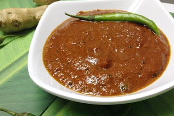 ചെറുതായി അരിഞ്ഞു വെച്ചിരിക്കുന്ന ഇഞ്ചി ആവശ്യത്തിന് എണ്ണ ഒഴിച്ച് മൊരിയുന്നവരെ വറുത്ത് കോരുക.ബാക്കിയെണ്ണയിലേക്ക് ചിരവിവെച്ചിരിക്കുന്ന തേങ്ങ ഇട്ട് ബ്രൗൺ നിറം ആകുന്നവരെ വറുക്കുക. അതിലേക്ക് മുളകുപൊടിയും,മല്ലിപ്പൊടിയും,ഉലുവപൊടിയും ചേർത്ത് മൂപ്പിക്കുക.വറുത്തുവെച്ചിരിക്കുന്ന ഇഞ്ചിയും തേങ്ങയും കുറച്ച് വെള്ളം ചേർത്ത് നന്നായി അരയ്ക്കുക.ഒരു ചീനച്ചട്ടിയിൽ ആവശ്യത്തിന് എണ്ണ ഒഴിച്ച് കറിവേപ്പിലയും കടുകും വറ്റൽമുളകും താളിച്ച് അതിൽ പച്ചമുളക് ഇട്ട് നന്നായി വറുക്കുക.അതിൽ ആവശ്യത്തിന് ഉപ്പും പുളി പിഴഞ്ഞതും ചേർത്ത് ചെറുതായി തിളപ്പിക്കുക.ഇതിലേക്ക് അരച്ചുവെച്ചിരിക്കുന്ന മിശ്രിതം ചേർത്ത് കുറുകുന്നവരെ തിളപ്പിക്കുക.ഇതിലേക്ക് ശർക്കര നന്നായി പൊടിച്ചു ചേർത്ത് കുറുക്കുപരുവത്തിൽ ഇറക്കിവെയ്ക്കുക.