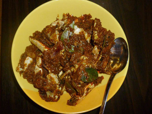 ഒരു പാനില്‍ വെളിച്ചെണ്ണ ഒഴിച്ച് ചുടാകുമ്പോള്‍ അതിലേയ്ക് സവാള, പച്ച മുളക്, ഇഞ്ചി വെളുത്തുള്ളി പേസ്റ്റ്, തകാളി എന്നിവ ചേര്ത്ത് വഴറ്റുക.അതിലേയ്ക് മുളക് പൊടി, മഞ്ഞള്പ്പൊാടി, മല്ലി പൊടി, വാളന്പുകളി പിഴിഞ്ഞത്, ഉപ്പ് ഇതെല്ലാം കുടി വഴറ്റണം.അതിനു ശേഷം ഞണ്ട്, കുരുമുളക് പൊടി,വെള്ളം എല്ലാം കുടി ചേര്ത്തി ളക്കി മുടി ചെറിയ തീയില്‍ വേവിക്കുക